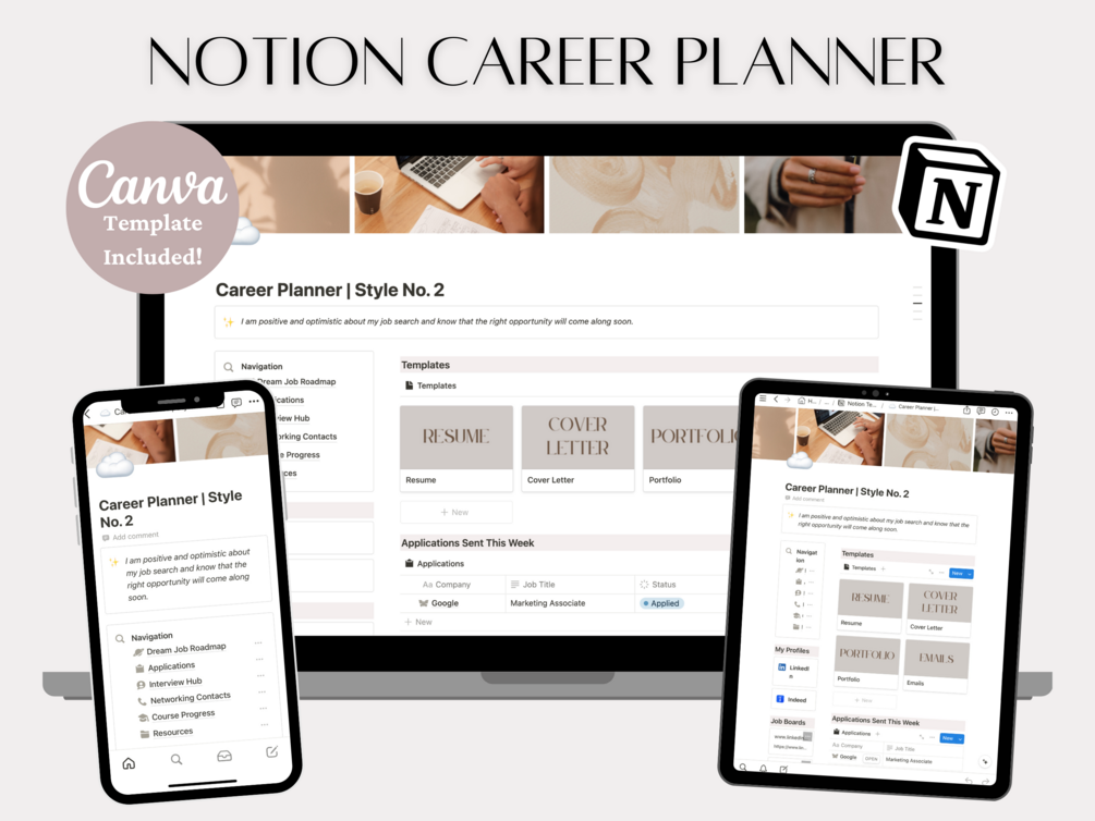 Notion Career Planner and Job Search Tracker - Neutral Aesthetic